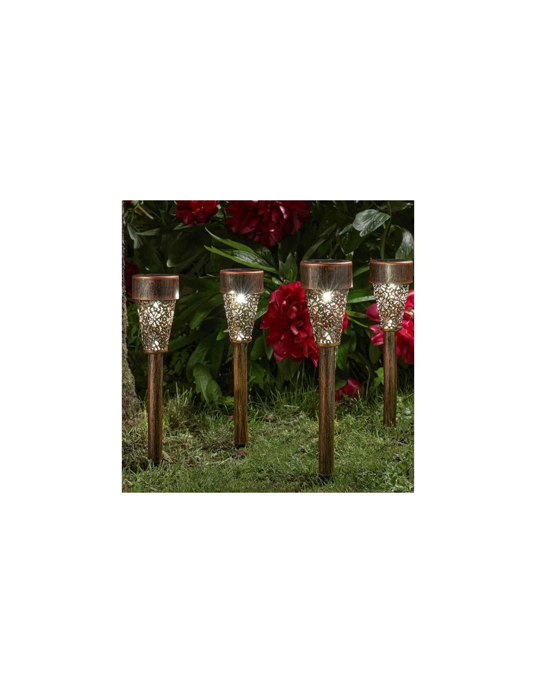 Eclairez vos allées, chemins ou bordures grâce à ses balises solaires Damasque en métal couleur bronze clair.