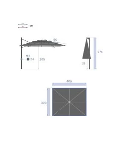Parasol déporté Eléa de L.3 x P.4 x H.2.7m avec toile superposée qui atténue la prise au vent !