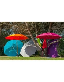 Un arc-en-ciel de couleurs pour ce parasol en fibre de verre.