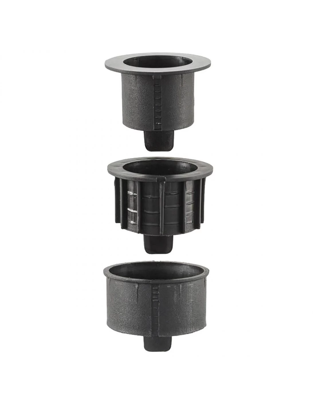 - 4 roues 3 bagues de réduction de mâts de 35 à 48 mm de Ø, avec molette de serrage.