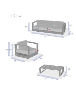 Salon moderne et chic de la ligne Allure, Hespéride, composé de 2 fauteuils, 1 canapé 3 places et une table basse !