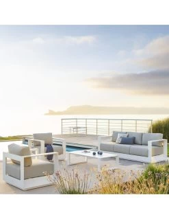 Salon moderne et chic de la ligne Allure, Hespéride, composé de 2 fauteuils, 1 canapé 3 places et une table basse !