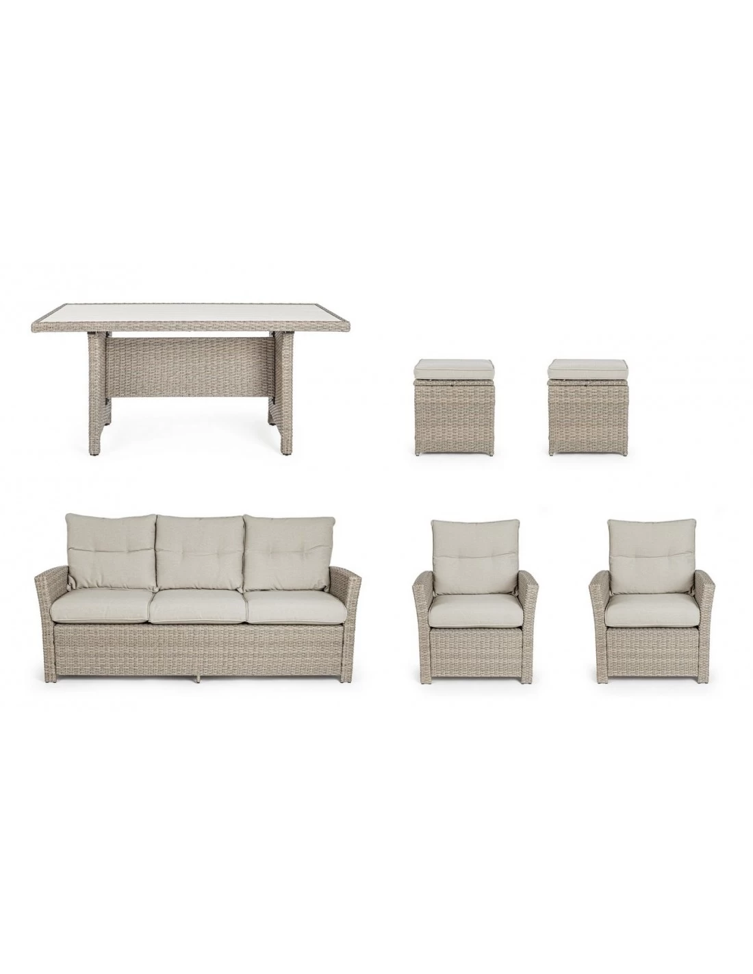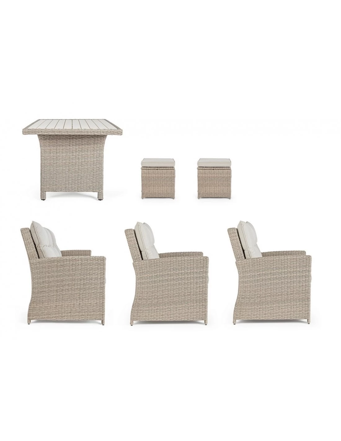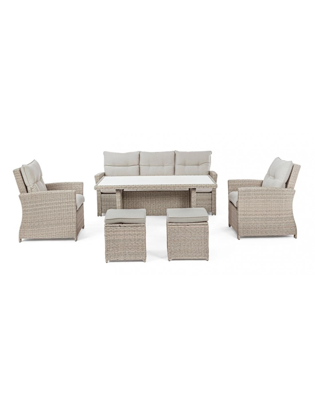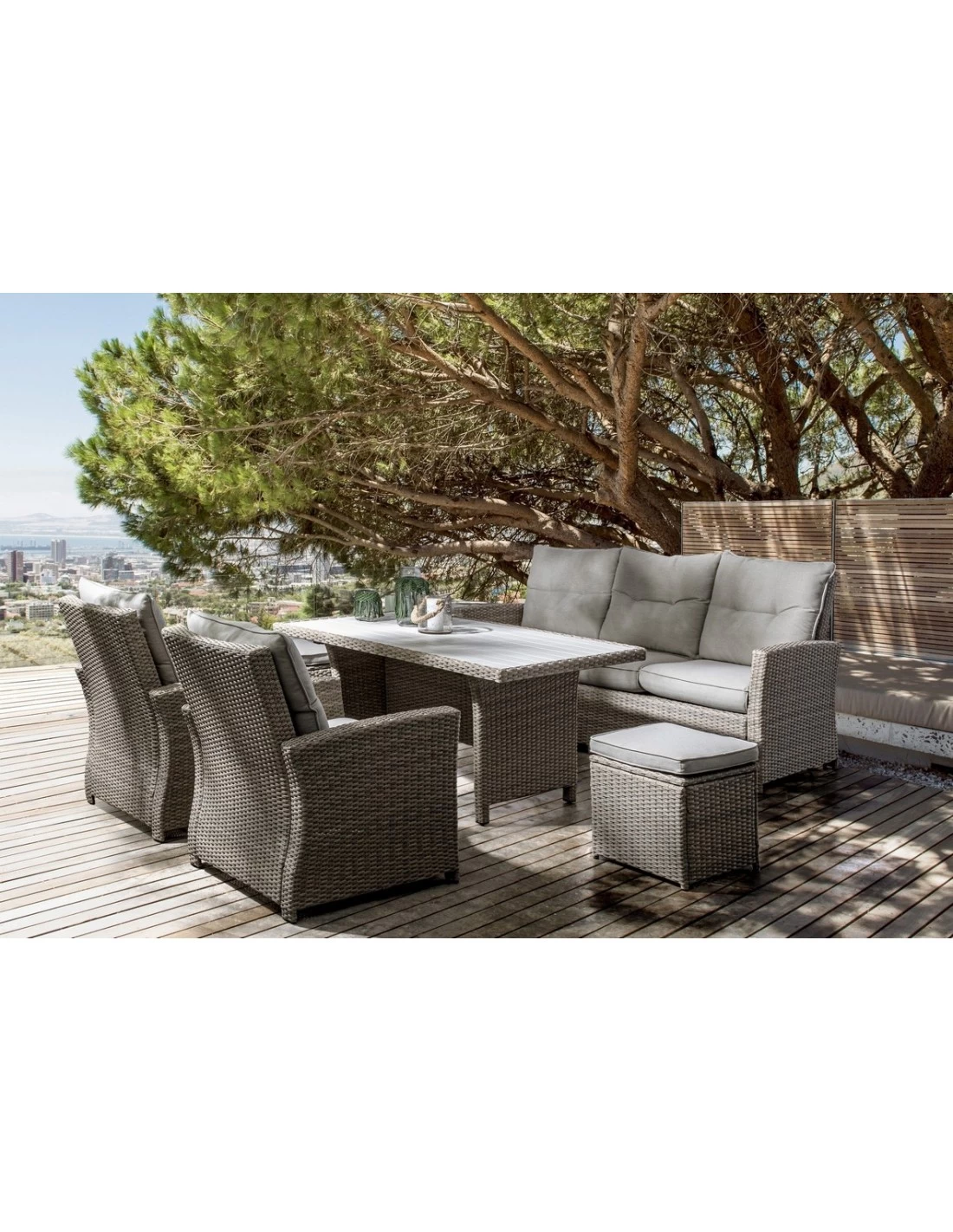 Succombez pour le charme naturel du salon Ariel de la marque Andréa Bizzotto qui peut accueillir jusqu’à 7 personnes.