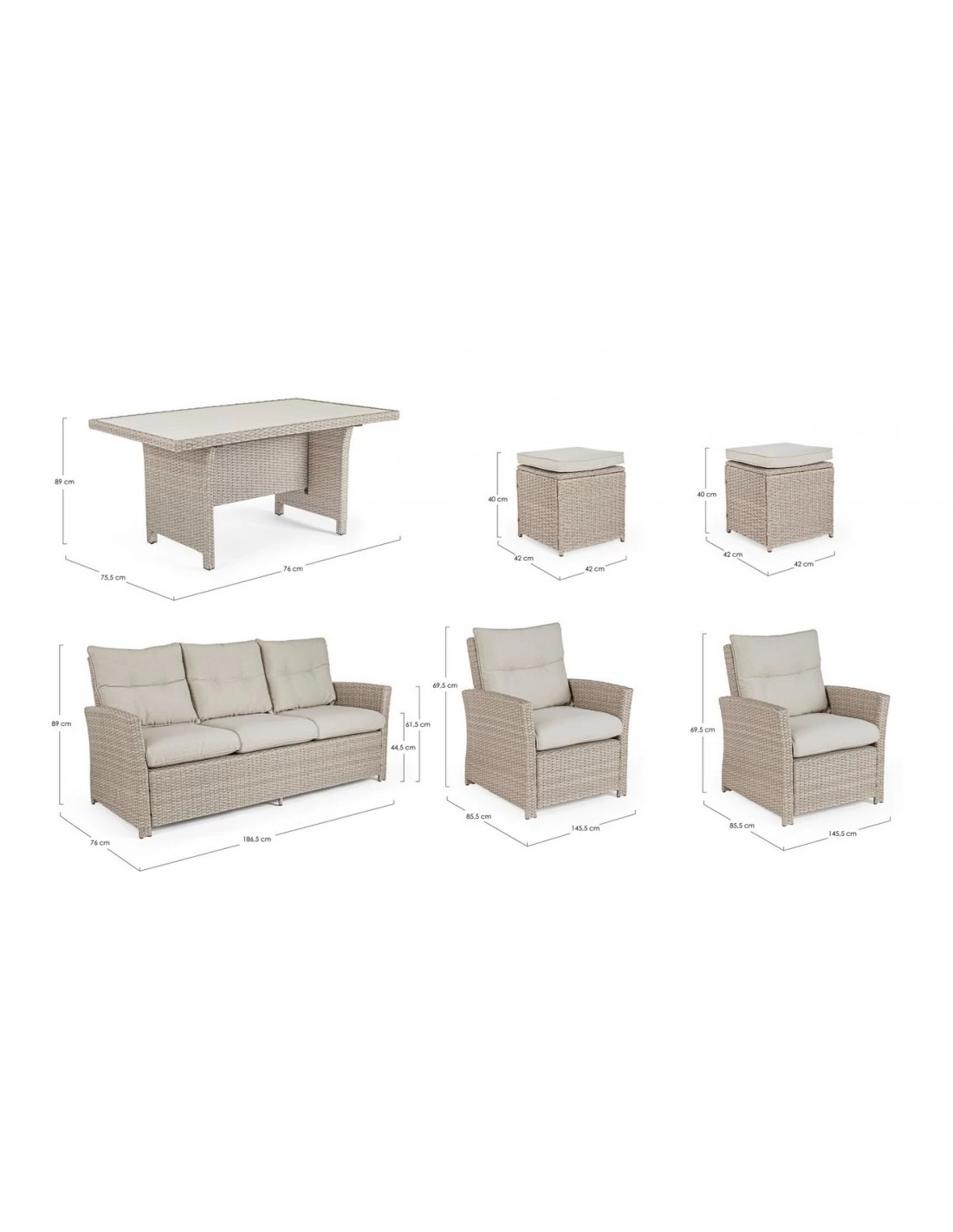 - L186.5 cm x H89 cm x P76cm