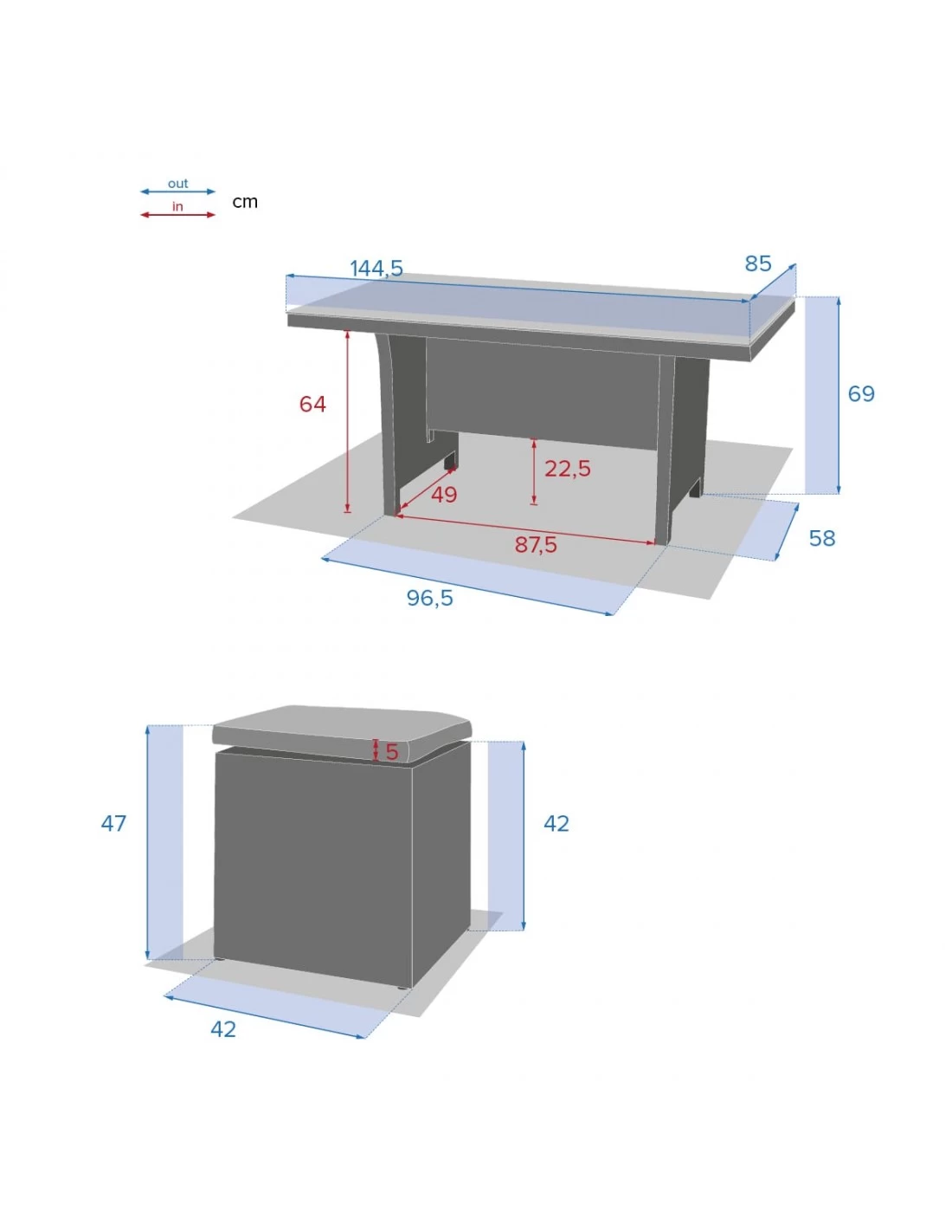 - L. 174,5 x P. 75,5 x H. 80 cm